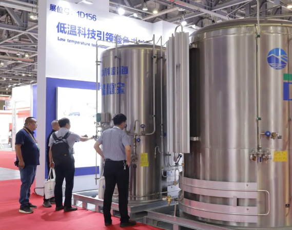 中科富海携核心大型低温氢氦低温制冷装备、绿色气体应用技术解决方案、高纯电子气体工程应用、酷德宝产品亮相本届展会,获得行业与社会广泛关注。酷德宝低温液体储罐产品,是储存各类大宗液氧、液氮、液氩以及液态二氧化碳等介质的储存压力容器,可为客户提供定制化供气服务方案。该服务内容集气体的设计、安装、使用以及维护于一体,根据不同的用气量需求,为客户提供各种规格的储罐,利用专用低温槽车对用气现场的小型储罐进行充装供气。中科富海酷德宝系列产品绝热效果好、蒸发量少、安全易用,气体供应更加方便,具有明显的经济、安全,高效优势。