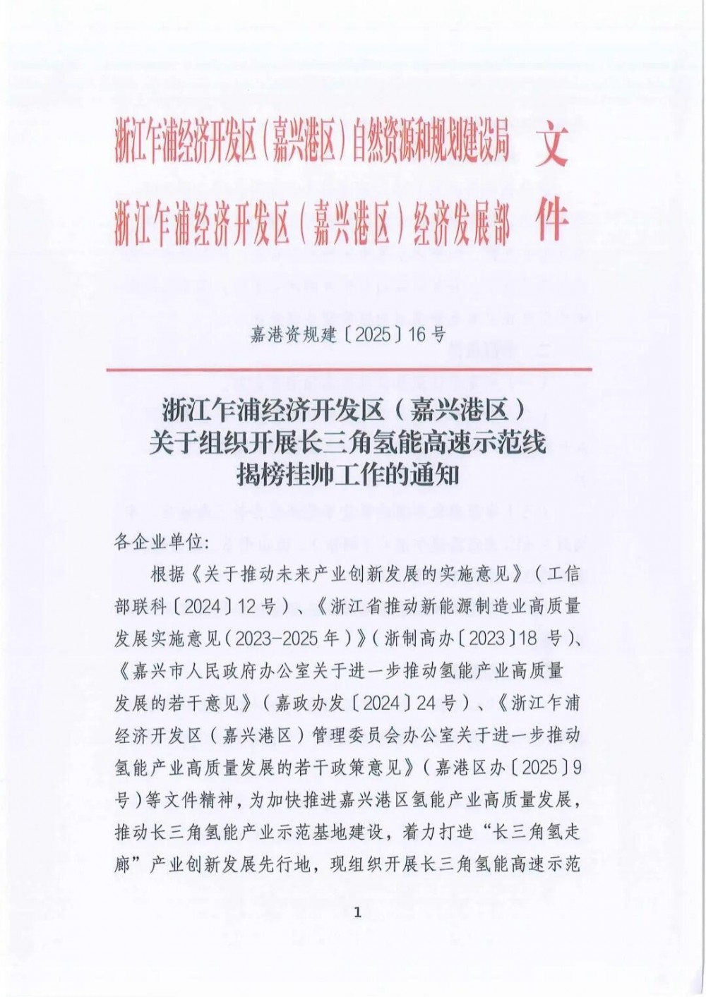 新能源圈获悉,近日,浙江乍浦经济开发区(嘉兴港区)关于组织开展长三角氢能高速示范线揭榜挂帅工作的通知。