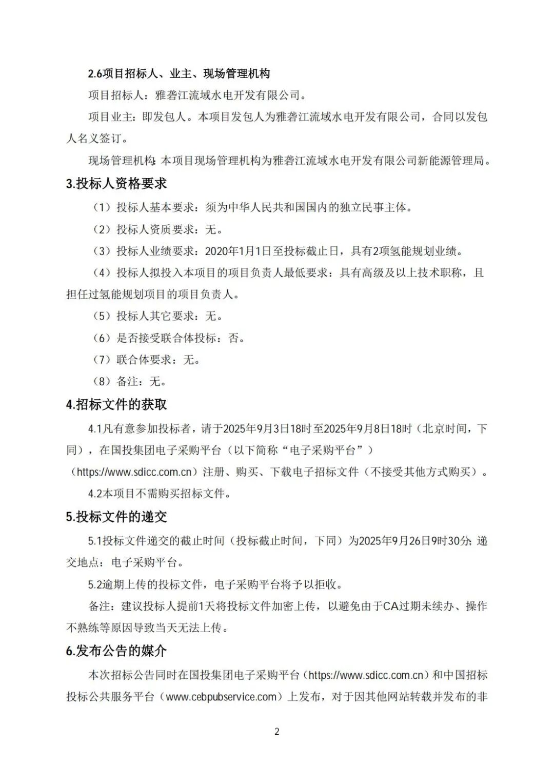 新能源圈获悉,9月3日,雅砻江流域氢能“十五五”专项发展规划研究(三次)公开招标公告。