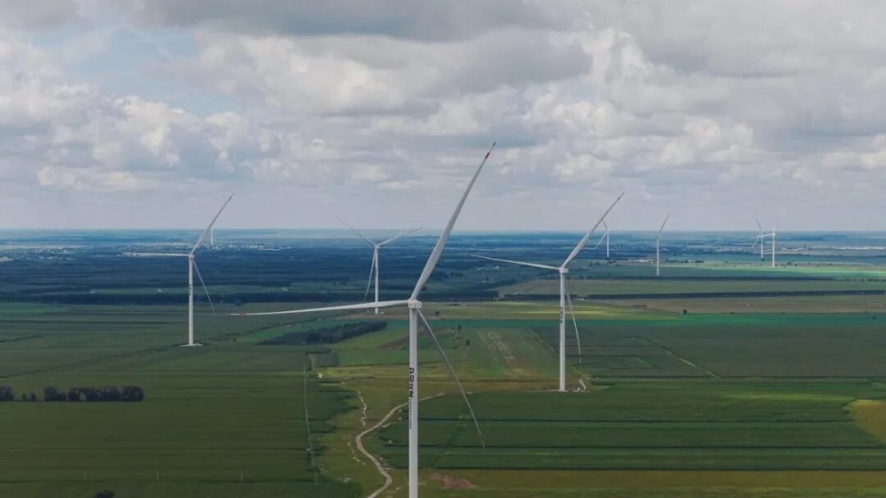 中能建松原氢能产业园(绿色氢氨醇一体化)项目采用绿电直供模式,创新应用了源网荷储精准匹配、新型储氢、多稳态柔性合成氨等一系列全球领先技术,为我国绿氢大规模商业化应用提供了可复制、可推广的样板。项目将分期建设总容量300万千瓦的新能源配套项目。金风科技为一期项目提供GWH221-7.6MW、GWH221-7.7MW共67台低温型陆上风电机组,总装机容量510MW。