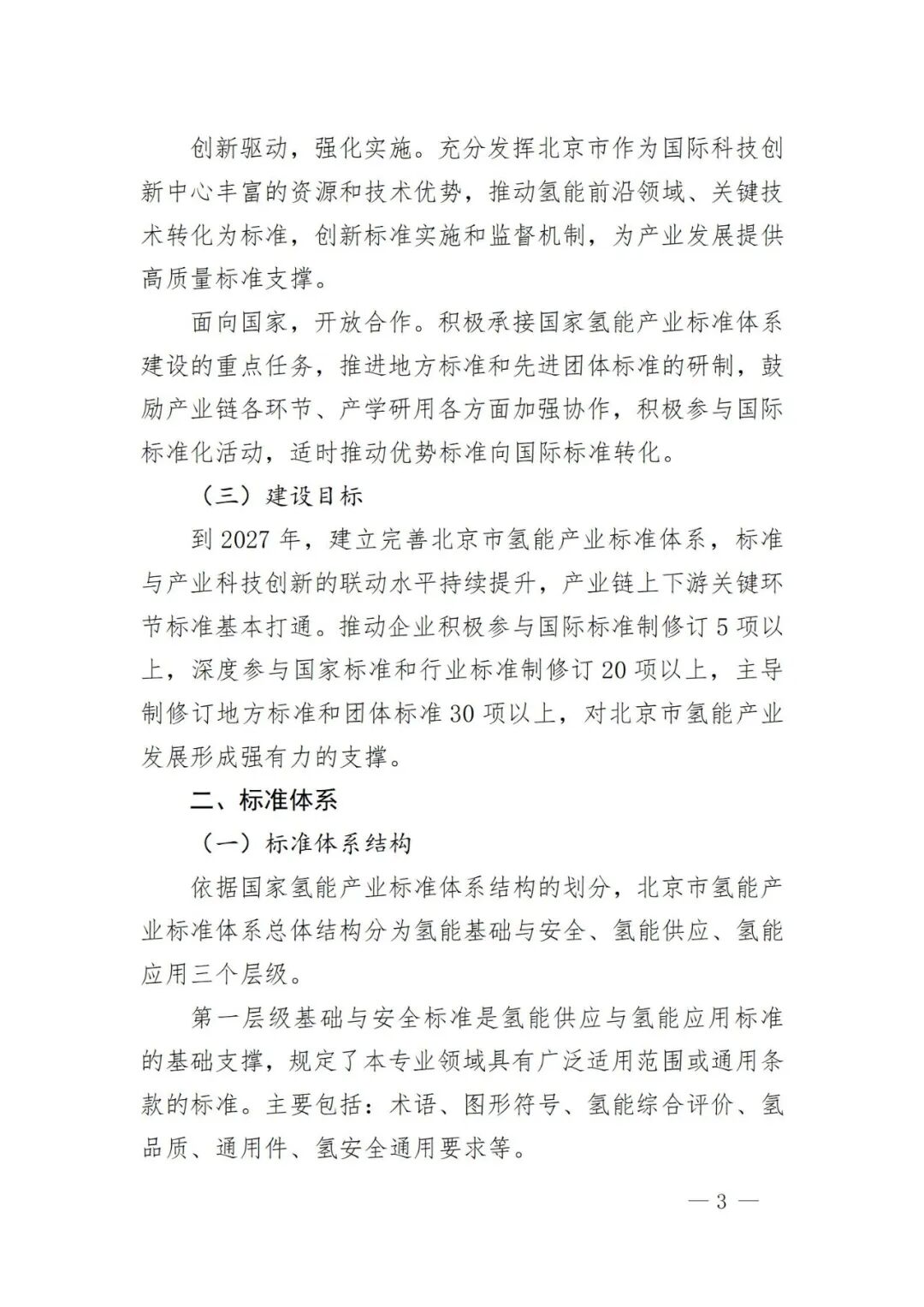 文件指出,到2027年,建立完善北京市氢能产业标准体系,标准与产业科技创新的联动水平持续提升,产业链上下游关键环节标准基本打通。推动企业积极参与国际标准制修订5项以上,深度参与国家标准和行业标准制修订20项以上,主导制修订地方标准和团体标准30项以上,对北京市氢能产业发展形成强有力的支撑。