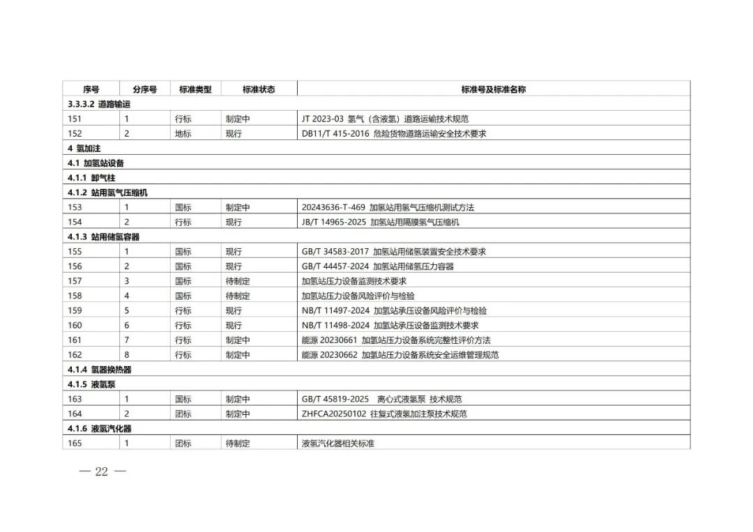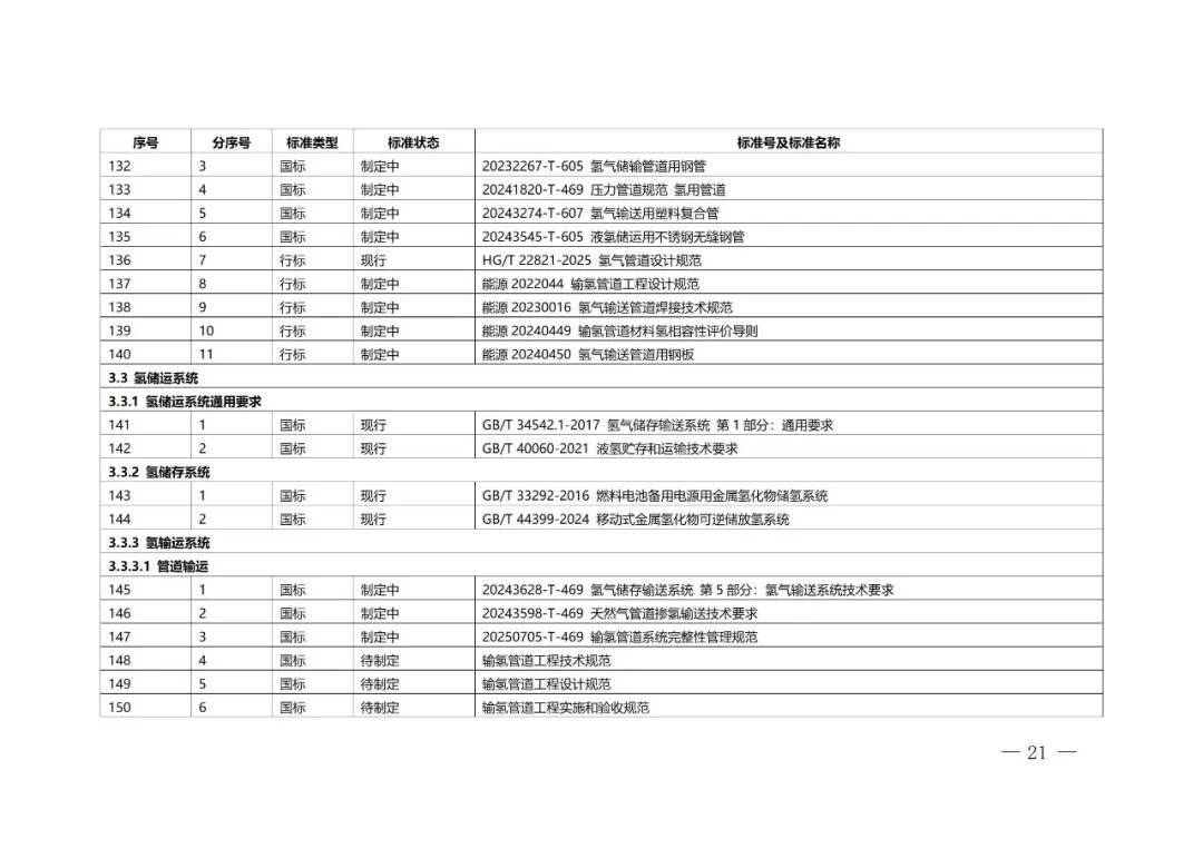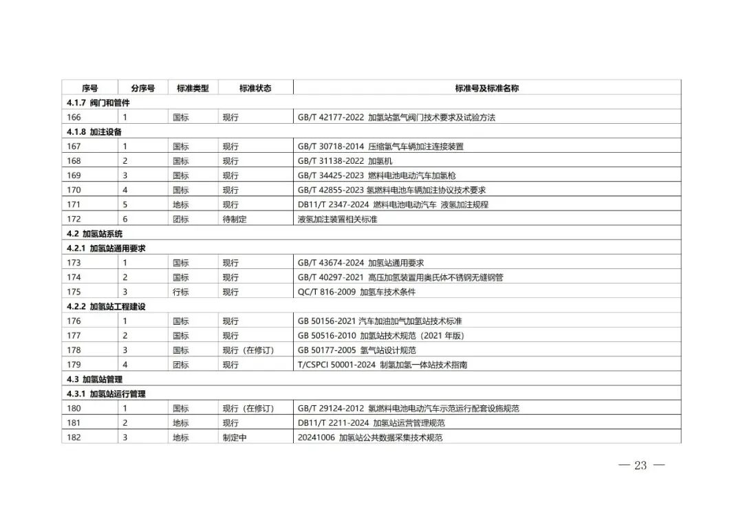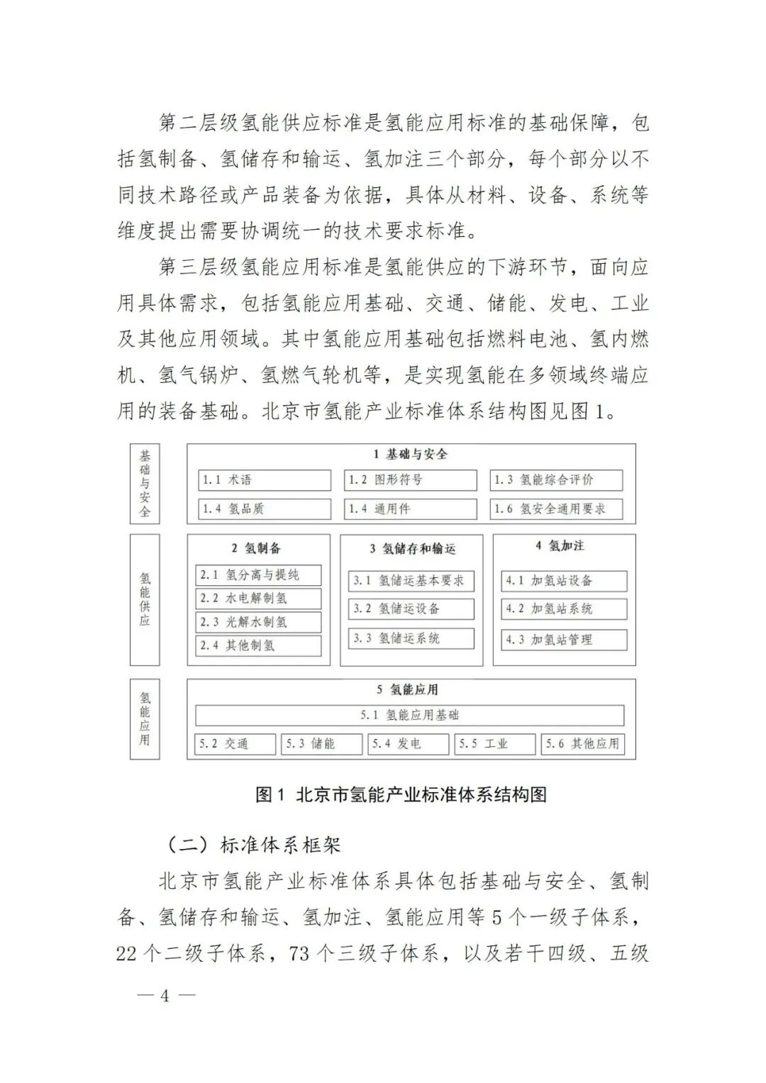 北京市氢能产业标准体系具体包括基础与安全、氢制备、氢储存和输运、氢加注、氢能应用等5个一级子体系,22个二级子体系,73个三级子体系,以及若干四级、五级子体系。