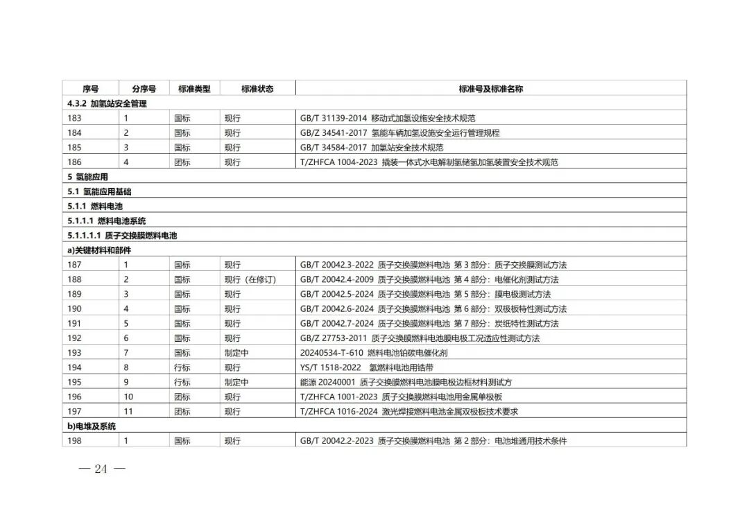 第三层级氢能应用标准是氢能供应的下游环节,面向应用具体需求,包括氢能应用基础、交通、储能、发电、工业及其他应用领域。其中氢能应用基础包括燃料电池、氢内燃机、氢气锅炉、氢燃气轮机等,是实现氢能在多领域终端应用的装备基础。