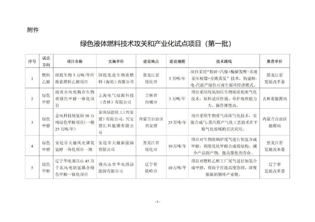 新能源圈获悉,9月5日,国家能源局综合司关于开展绿色液体燃料技术攻关和产业化试点工作(第一批)的通知。