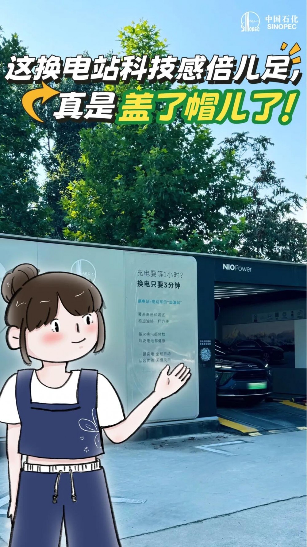 北京京中石油朝英加能站的智能换电站是中国石化与蔚来合作建设的全球首座全智能换电站,采用蔚来自主研发的第二代换电站技术,具有自动停泊、自动换电等便捷高效的特点,为客户提供极致的智慧出行体验。