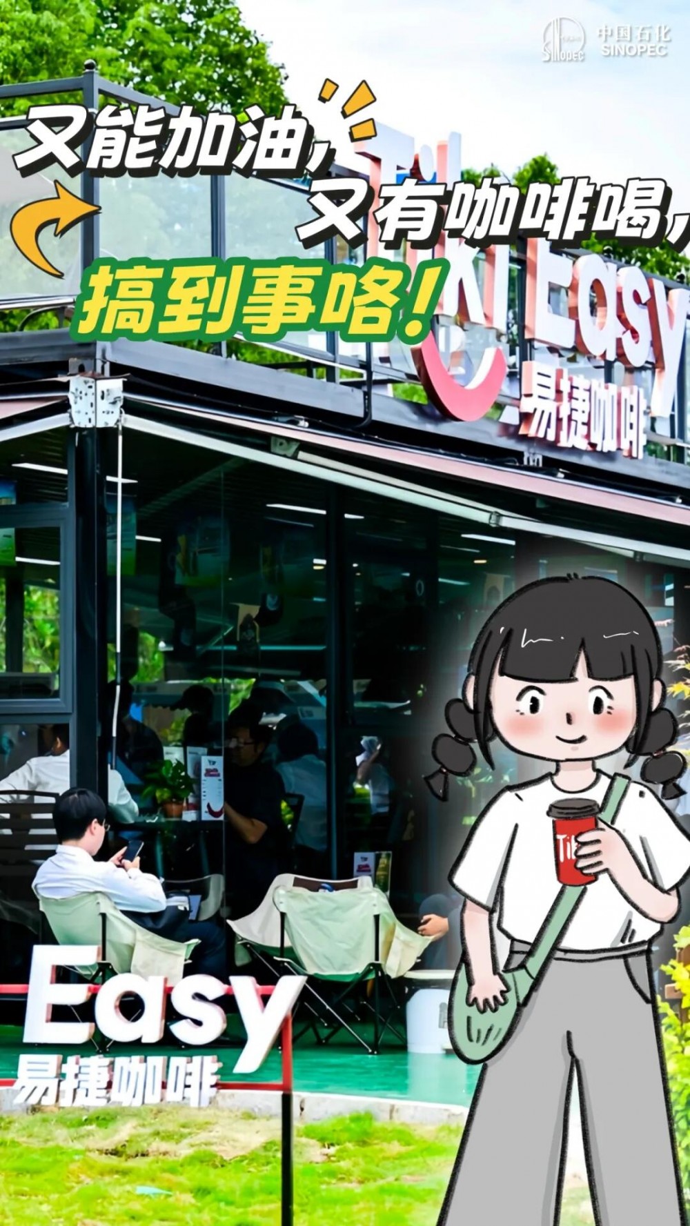 贵州贵阳石油甲秀南路二加能站易捷咖啡店是中国石化全国首座新形象花园店。