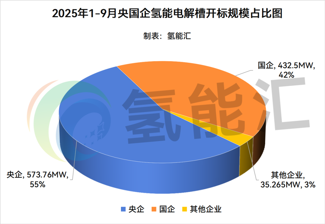新能源圈通过氢能项目数据库显示,2025年1-9月共有22家开发商发布电解槽开标结果,大部分项目由央企占据。
