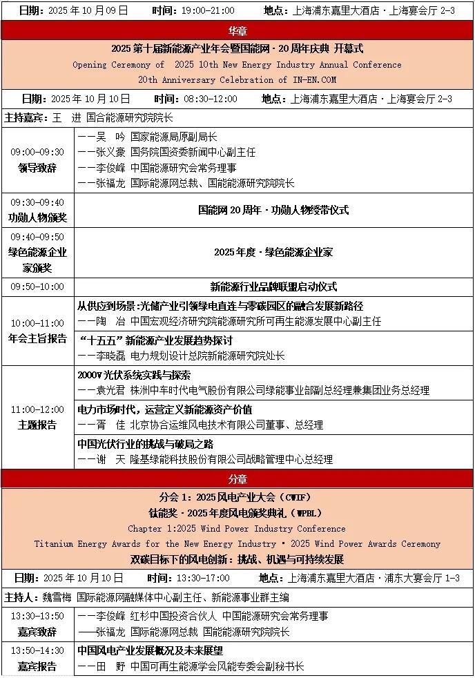 ◢本届年会生态伙伴:全球绿色能源理事会 国际金融论坛(IFF)能源转型与发展委员会 亚太新能源行业协会 东盟与东亚经济研究院 中国化学与物理电源行业协会 全球能源互联网经济技术研究院 中国电力建设企业协会 清华大学信息技术研究院 清华大学能源互联网创新研究院 清华大学社会科学学院 能源互联网标准化技术委员会 全球能源互联网发展合作组织经济技术研究院 中国信息通信研究院云计算与大数据研究所 上海市工业经济联合会 中国新型储能产业创新联盟 国家能源互联网产业及技术创新联盟 国网南瑞研究院 清华大学北京信息科学与技术国家研究中心 上海电力大学环境与化学工程学院 上海交通大学国家电投智慧能源创新学院 上海氢能利用工程技术研究中心 清华四川能源互联网研究院绿色储能研究 上海空间电源研究所研 深圳清华大学研究院 中国金融学会绿色金融专委会 中国投资协会能源投资专业委员会 中国能源研究会能源互联网专委会 中国能源研究会储能专委会 中国可再生能源协会生物质分会 中国可再生能源学会氢能专委会 中国绿色供应链联盟光伏专委会 零排放船舶技术协会 加拿大魁北克大学氢能研究所 中国汽车战略与政策研究中心 上海新能源行业协会 上海新能源人才技术教育交流中心 中国电力发展促进会碳达峰碳中和专委会 国合能源研究院 充换电联盟 长三角太阳能光伏技术创新中心 上海市太阳能学会 江苏省光伏产业协会 TUV南德集团 德国莱茵 北京绿色交易所 彭博新能源 广发证券股 安永华明会计师事务所 中信金融租赁 清能互联 上海世博会零碳馆 绍兴市新能源充换电产业协会