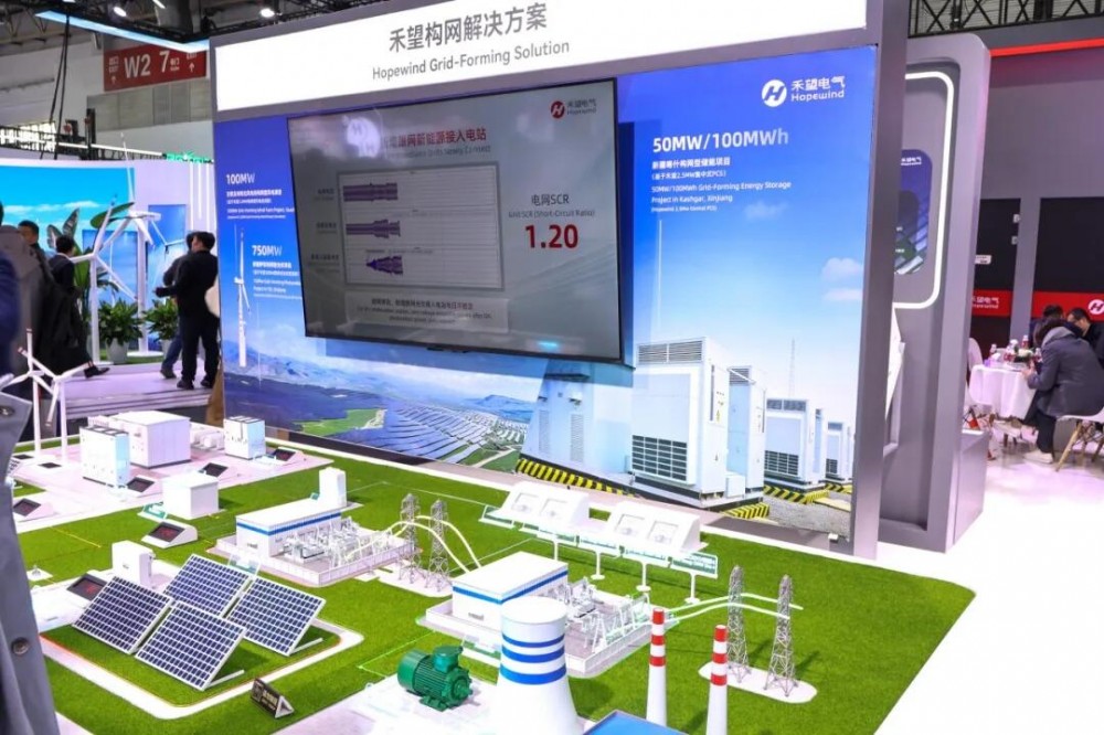 禾望电气通过沙盘的形式,系统展示了其在风、光、储、氢等多能协同与电网交互方面的新能源发电场站级生态构建能力,吸引了众多行业专家驻足交流。作为构网技术的积极推动者,禾望电气拥有从设备到系统的全栈构网能力及验证装备,旗下构网型风电变流器、构网型光伏逆变器、构网型储能变流器等产品已实现规模化应用。系统具备惯量响应、一次调频、宽短路比运行、故障穿越、黑启动、并离网切换、宽频振荡抑制等先进功能,可有效支撑“双高”新型电力系统的安全稳定运行。