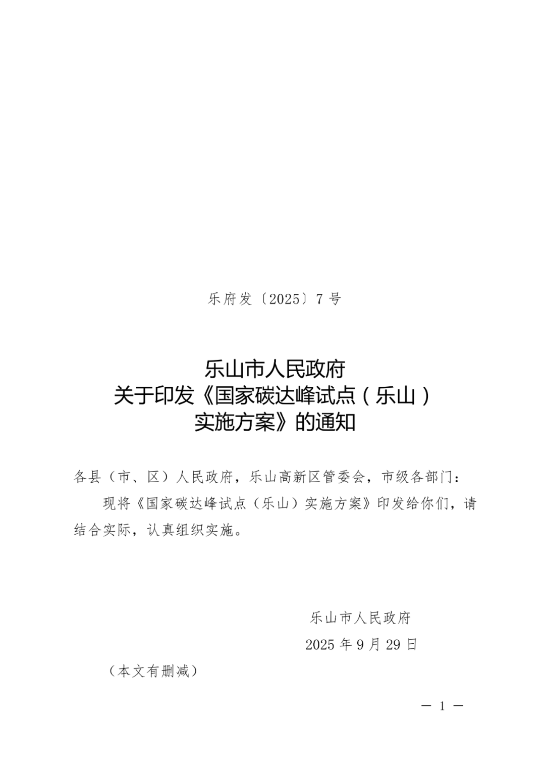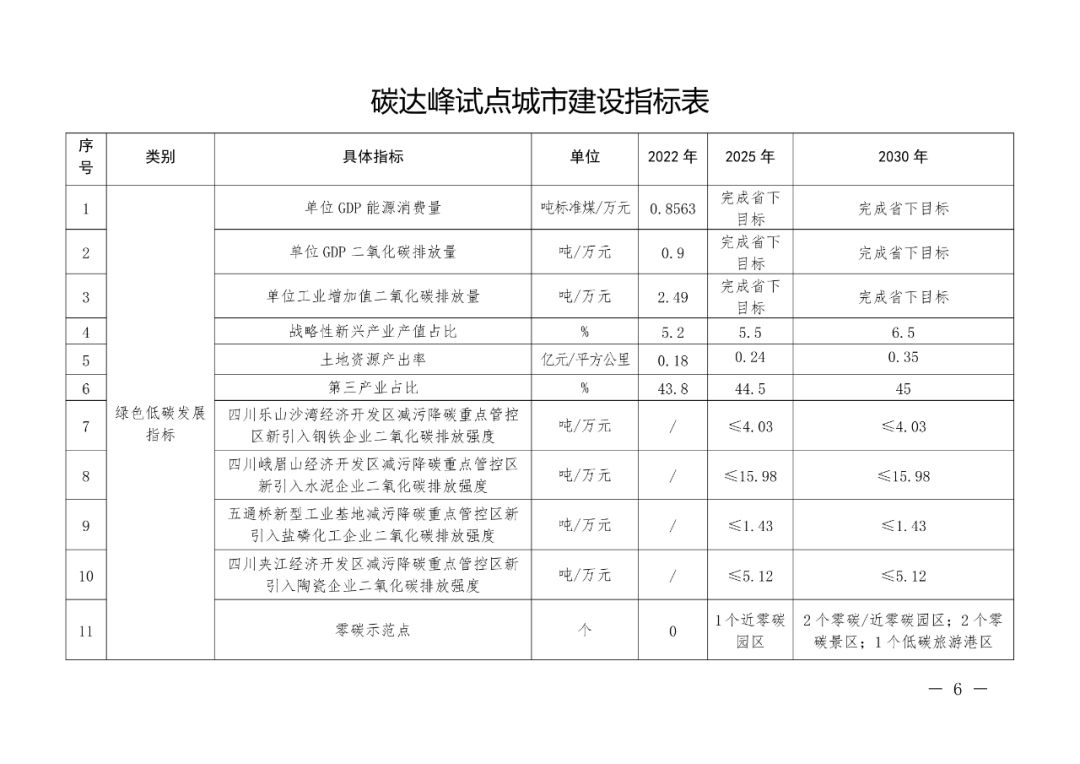 新能源圈获悉,近日,乐山市人民政府关于印发《国家碳达峰试点(乐山)实施方案》的通知。
