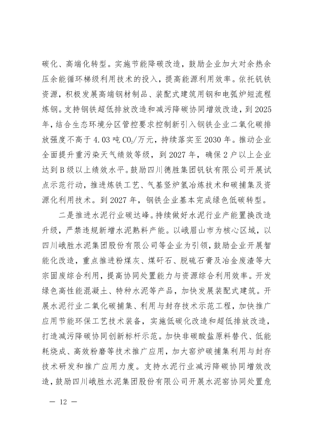 围绕钢铁、化工、水泥、陶瓷等高碳行业降碳需求,大力推进低碳化和数字化改造、新型储能、尾气制氢、CCUS(二氧化碳捕集、利用与封存)等关键技术攻关。依托福华通达化学股份公司、乐山金石焦化有限公司等企业工业副产氢优势,重点研发非天然气制氢技术。