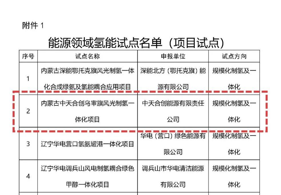近日,国家能源局综合司正式公示能源领域氢能(第一批)试点名单,中天合创绿氢项目凭借扎实的技术积累、清晰的产业布局及显著的示范价值,成功入选!这是国家层面对公司在清洁能源领域创新实践的权威认可,标志着中天合创绿氢业务迈入国家级试点示范行列。