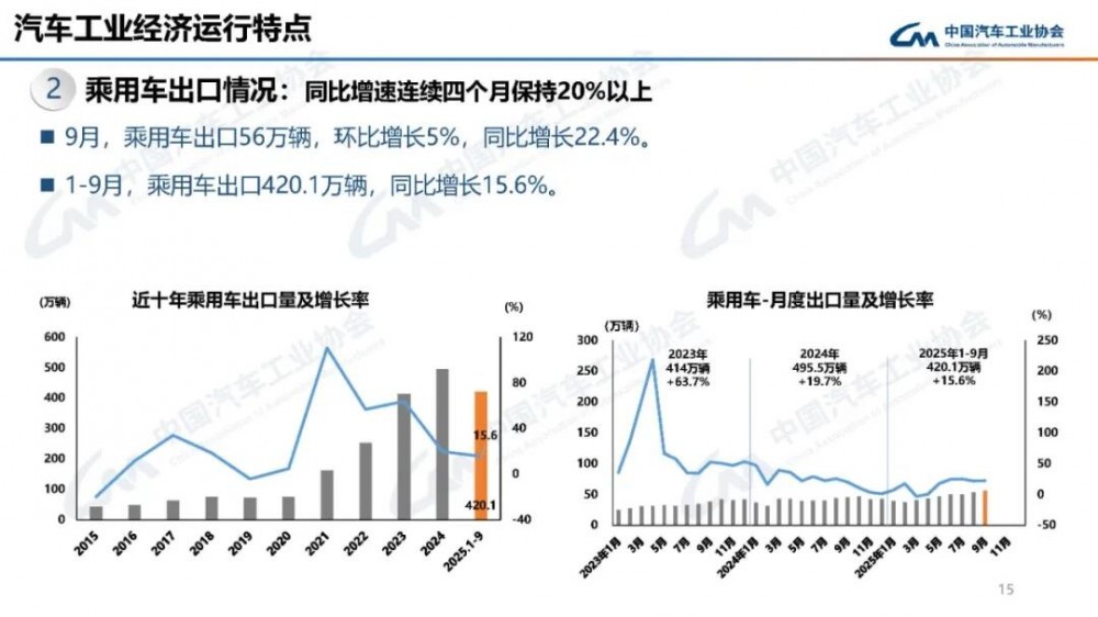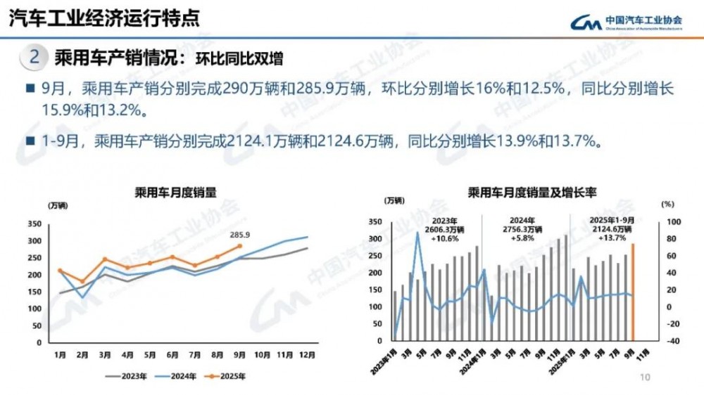 据中国汽车工业协会分析,近期,汽车以旧换新政策继续显效,部分暂停的地区开始恢复,行业综合治理“内卷”工作取得积极进展,地方车展火热进行,企业新品密集上市,汽车市场整体延续良好态势,产销月度同比增速已连续5个月保持10%以上,且新动能加快释放,对外贸易呈现韧性。