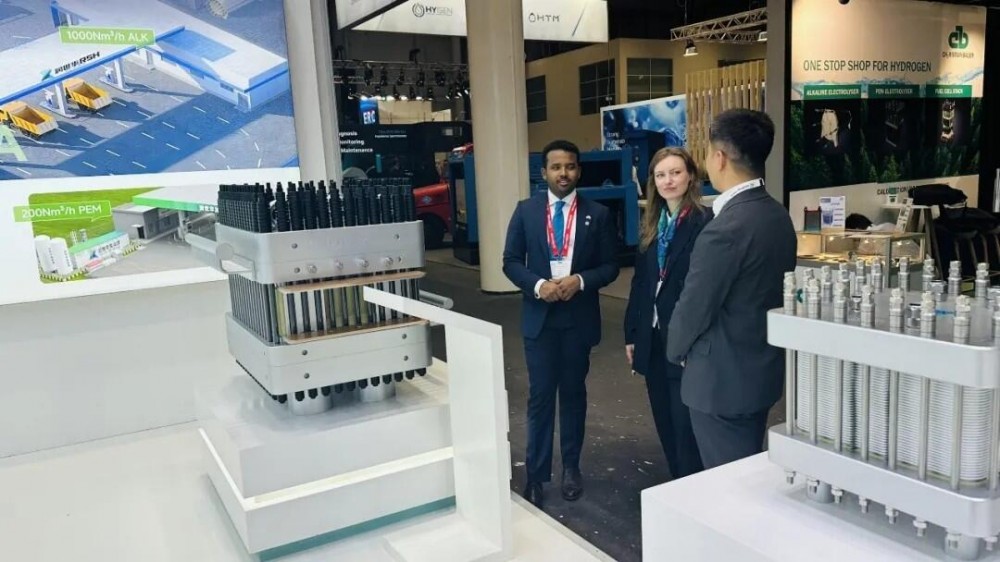 本次参展,润世华氢能源围绕“技术自主化、产品场景化、布局全球化”三大维度,集中呈现了包括质子交换膜电解槽、50标方PEM电解槽以及高度集成的PEM制氢系统在内的多款核心产品。公司所有展出设备均实现全链条国产化,在电解效率、负荷适应范围、系统稳定性等关键性能上达到国际先进水平,可广泛适用于绿色化工、规模化储能、清洁交通和能源枢纽等多类场景,带着多场景化应用落地的中国案例,展现出中国企业在氢能装备领域的硬核实力与系统集成能力。