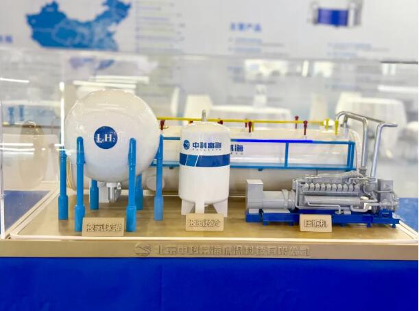 展会期间,中科富海重点展出国内首条民用低能耗液氢工厂重大示范工程。该座工厂基于自主研制的氢液化成套装置,自主可控的集成与调控工艺包;实现透平膨胀机最高绝热效率83.52%;在额定工况下达到5.27吨/天液化能力,氢气液化能耗达到 11.8 kW·h/kg- LH2低能耗水平;产品液氢仲氢含量满足GB/T 40045-2021及GJB 5405-2005标准要求,在各种负荷工况下实测皆大于96%,产品纯度99.99996%;整套液化装备稳定可靠运行超过168小时。液氢具有储能密度高、运输效率高、储存压力低以及高效安全方面的优势,是全球公认解决氢能大规模低成本储运的有效手段之一。氢液化可获得电子级标准超高纯度氢,为半导体、燃料电池等领域关键工艺提供可靠气源保障。