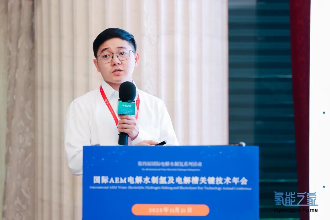 会上,CTO谢周兵发表《AEM电解槽核心器件国产化降本方案》演讲,深入剖析了当前 AEM 电解水制氢技术的发展现状与挑战,并分享了公司在技术创新与降本道路上的探索与实践。