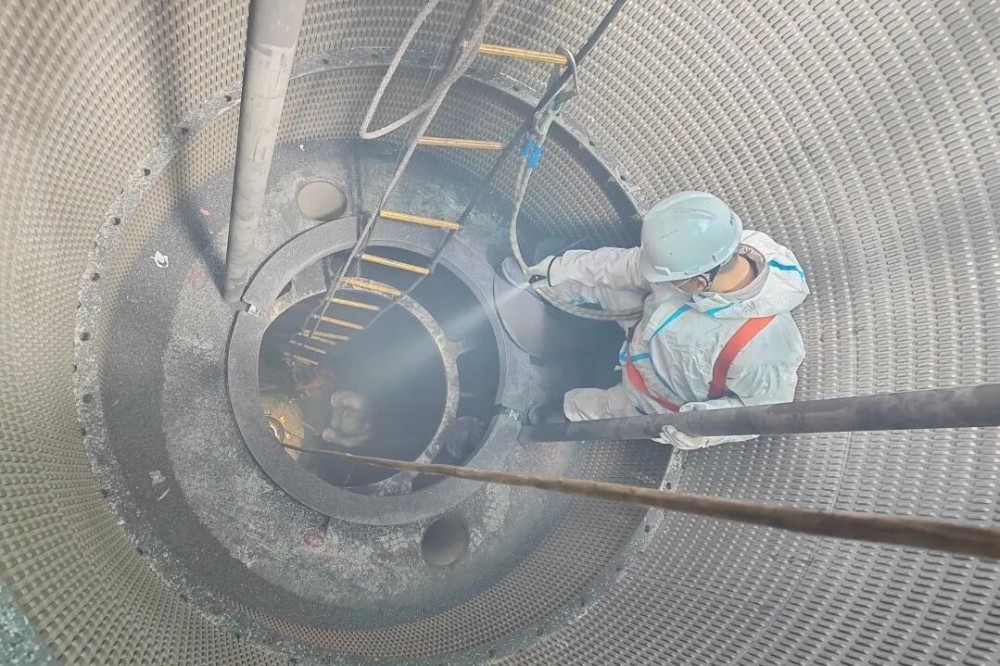 图2深入合成塔内部装填触媒