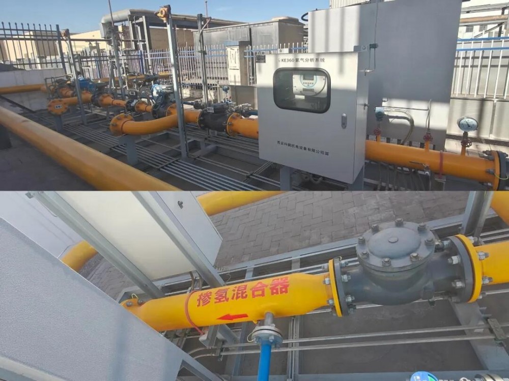 项目团队自主研发的“随动定比智能控制高精度均匀掺混工艺”融合先进算法,实现了掺氢比在5%至20%之间的精准调控,日流量范围达2000至3000标准立方米,系统运行稳定高效。面对氢气易泄漏、爆炸极限宽等安全挑战,项目团队成员连续奋战,在调试阶段连续72小时记录并优化参数,成功攻克掺氢比例精准控制的应用难题。