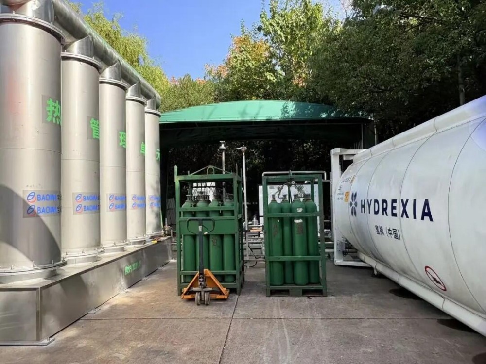 本项目依托国家重点研发计划,示范工程配有钢厂余热热管理系统,包括氮气汇流排、放氢阀组等关键设备,实现了氢气在低压下的安全输送和热交换,可充分利用钢厂余热。同时,研发设计固态储氢控制及安全监控系统,能实时监测氢气管道泄漏、压力、温度等参数,并用AI视频识别氢敏胶带变色来智能预警,确保连续运行无重大事故,该系统目前已稳定、高效地运行,为固态储氢技术在工业场景中的应用提供了可靠解决方案。
