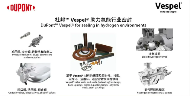 Vespel®零件与型材凭借其独有的综合物理机械性能、高耐摩性和低氢渗透性,能够满足氢能应用中最苛刻的密封要求。Vespel®具有低压缩模量且在高温和低温下均能保持稳定的特点,耐蠕变性能优异,在各种典型氢环境下都能实现优异的动态密封性。Vespel®零件与型材受氢能客户青睐,被用于制作严苛条件下使用的各种阀座和密封件、执行器衬套、支撑环、活塞环和填料环、迷宫式密封件和阀杆填料。