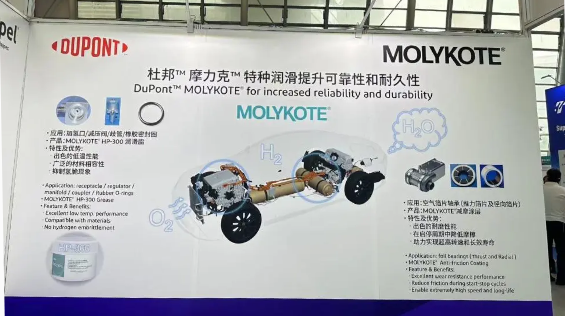 杜邦团队还将在展会上展示MOLYKOTE®特种润滑产品线及在氢能行业的应用。MOLYKOTE® HP-300润滑脂的润滑能力及其对氢的惰性可以降低因制造或装配不当造成的泄漏风险,是输氢管道用阀门密封件的理想润滑剂。MOLYKOTE®减摩涂层具有高耐磨性和低摩擦系数特性,可应用于燃料电池汽车上空气压缩机的箔片轴承,可以支持其实现极高的转速,并且降低启停循环期间的摩擦损失,从而提高FCV空气压缩机的可靠性和耐用性。