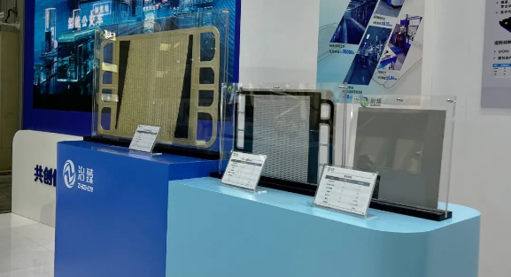 治臻股份展出的最大可支持200kW级别电堆的金属双极板产品及技术,采用0.075mm厚度基材,已实现国内外多个项目应用量产。所采用的金属极板涂层已经通过车用工况连续 20000 小时的耐久性测试评估。