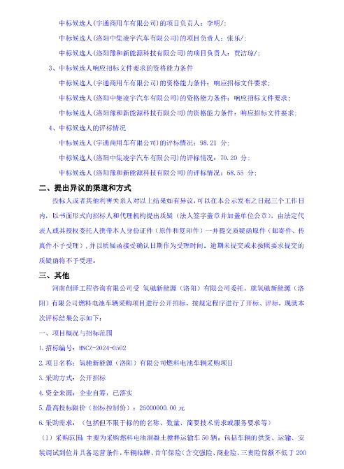 据新能源圈了解到,近日,氢驰新能源(洛阳)有限公司燃料电池车辆采购项目中标候选人公示。