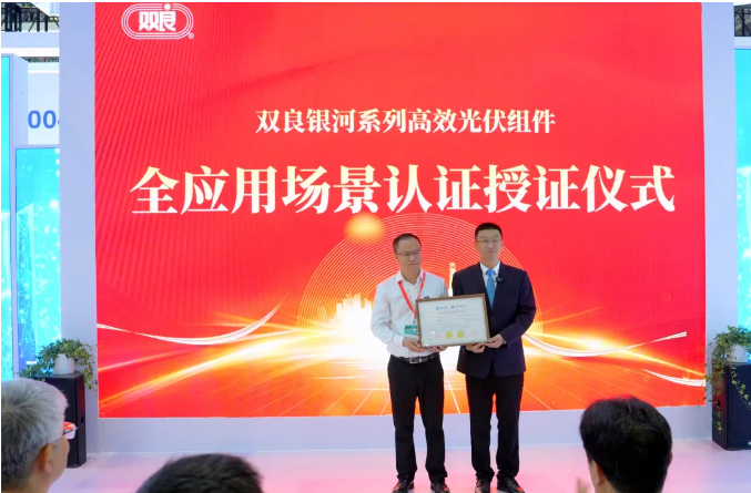 开幕式当天上午,双良举办了高效光伏组件全场景产品系列认证授证仪式,由国家光伏质检中心(CPVT)为双良高效光伏组件系列产品颁发全球首批认证证书,国家光伏质检中心主任、院长、党委书记鲍军,双良集团总裁马培林等领导嘉宾出席活动。