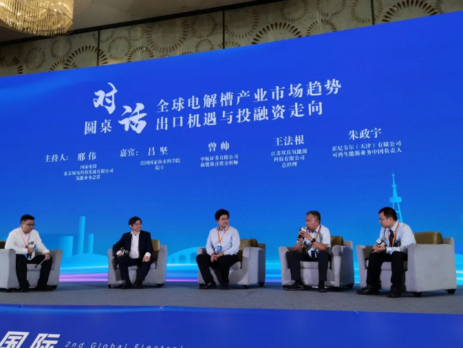 大会首日首场圆桌对话中,在讨论全球电解槽产业的市场趋势、出口机遇与投融资走向时,双良新能源装备/双良氢能源科技总经理王法根表示:“一、电解槽出口面临着在充分保证安全性的前提下如何满足客户对产品的模块化需求、大型应用的集控使用场景将会成为趋势;二、国际市场足够大,针对欧美电解槽市场本土化的保护策略,中国企业可以提供物美价廉具有竞争力的产品,我们坚信有竞争才有成长;三、就当前经济形势来讲,装备制造业更多关注下游应用场景,国内外氢能投融资的走向需要具体问题具体分析;四、双良氢能在深耕国内市场、拥有多家用户的同时,先后成功中标中东、欧洲项目,所以我们认为“安全可靠、大标方、宽负荷、高电密、低能耗”的电解槽产品将适应更多的绿电应用场景。”