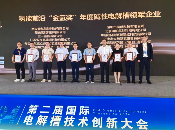 CIEC 2024大会组委会专家团队通过聚焦技术创新、产品性能、市场影响和行业领导力等方面综合评定,在2024第二届国际电解槽技术创新大会上为双良氢能颁发了氢能前沿“金氢奖”,被评为年度碱性电解槽领军企业。