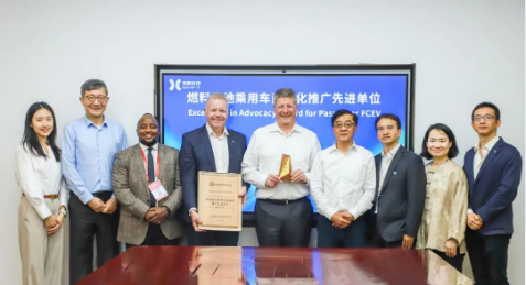 此外,代表们还拜访了上海捷氢科技股份有限公司。会后,捷氢科技向集团旗下英美铂业公司颁发了“燃料电池乘用车商业化推广先进单位”奖项,以表示对英美资源集团和英美铂业在氢能、燃料电池技术及燃料电池乘用车商业化领域贡献的充分认可。欧阳彬则获授“燃料电池乘用车商业化推广先行者”称号,这也是对他个人长期耕耘于燃料电池乘用车推广的肯定。