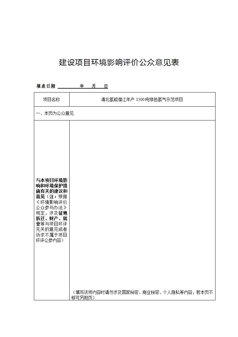 公众意见表-清北氢能潜江年产1500吨绿色氢气示范项目.docx