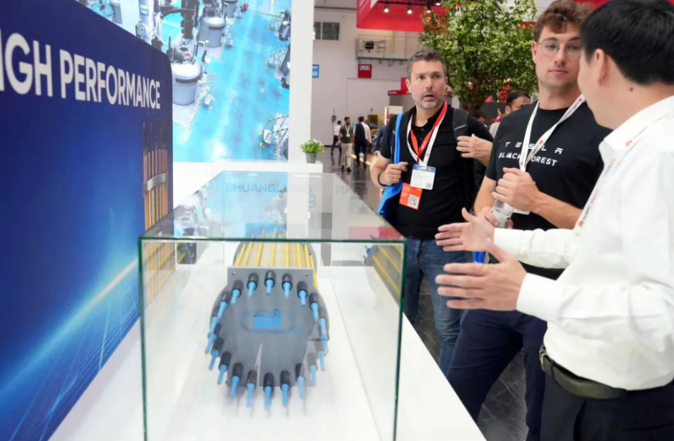 在氢能主题板块,双良展示了自主研发的新一代绿电智能制氢系统,以及光氢储一体化解决方案。双良最新款的电解槽直流电耗可降至3.992kW h/Nm³ H₂@2500 A/m³,最低运行负荷10%,热启动时间≤10s,更加节能降耗,适应绿电应用场景。凭借更专业、更安全、更低耗、更智能的产品特性,双良绿电智能制氢系统获得了业界高度评价。