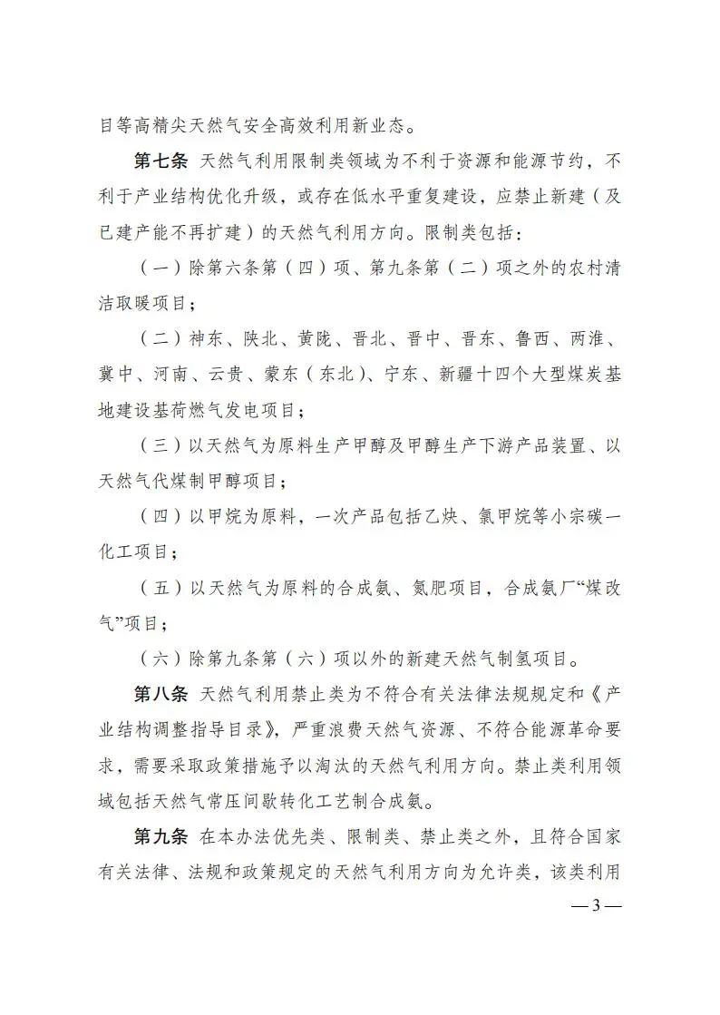 文件首先界定了天然气利用分优先类、限制类、禁止类和允许类。