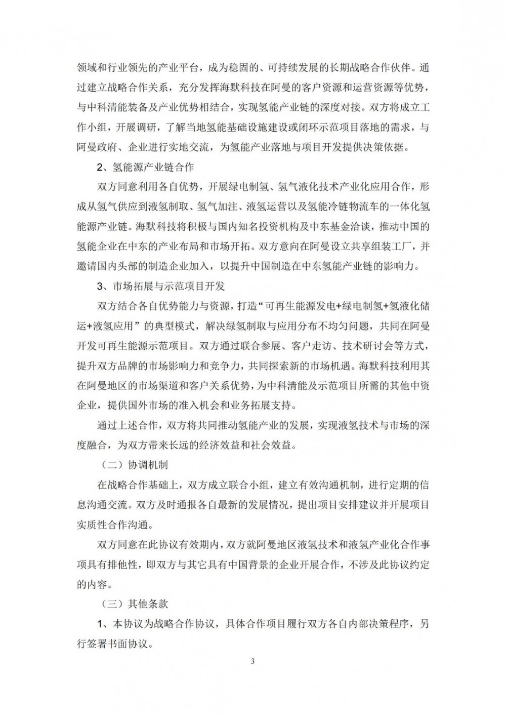 中科清能以其在氢液化关键技术、核心装备研发制造的专业能力与丰富经验,与海默科技在中东地区尤其是阿曼20年优质能源客户资源、投融资能力、本地化发展经验以及良好的政府关系相结合。双方基于各自的专业优势,致力于在阿曼共同推进液氢制储运一体化项目与产业合作。