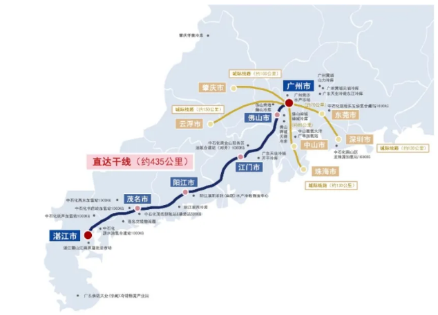 01、广湛氢能高速示范项目覆盖广州、佛山、东莞、江门、阳江、茂名、湛江等沿线城市,辐射粤港澳大湾区、海南和广西东南地区,依托沈海高速、汕湛高速等高速线路,207、228和325等国道,以及珠三角地区城际高速网络,覆盖沿线地区农产品集贸市场、冷链物流中心等集散点,形成一个贯通省内中西部城市的快捷直达干线和多条辐射珠三角地区的城际支线的氢能冷链运输及城配网络。