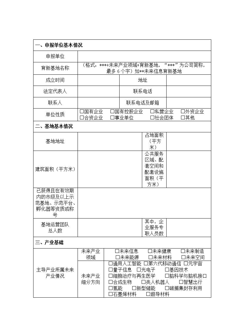 附件1:北京市未来产业育新基地申报书