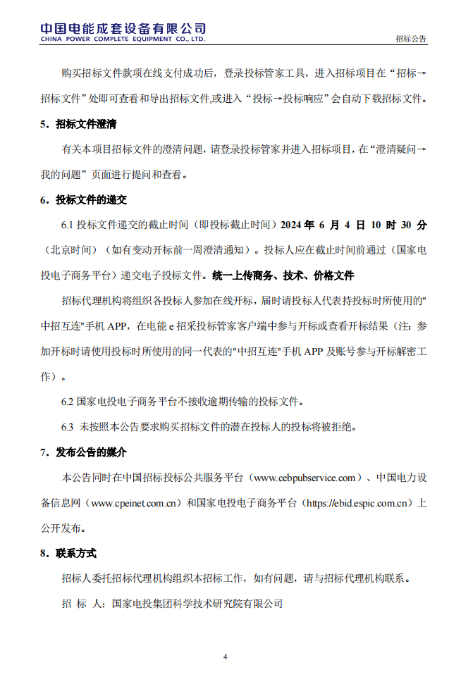 2024-04-30 据新能源圈了解到,日前,国家电投集团科学技术研究院有限公司2024年第六批集中招标(重新招标)招标公告公布。