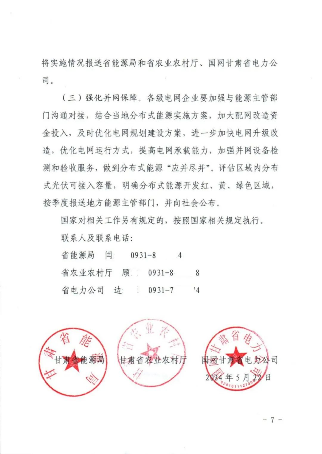 据新能源圈了解到,5月22日,甘肃省能源局、甘肃省农业农村厅、国网甘肃省电力公司联合下发《关于开展甘肃省“千家万户沐光行动”“千乡万村驭风行动” 试点工作的通知》。