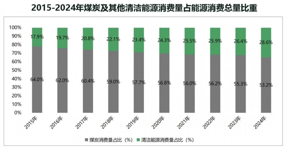 与此同时,煤炭占比呈现持续下降趋势,从2015年的72.2%降至2024年的63.9%,十年间下降超过8.3%,清洁替代效应日益凸显。