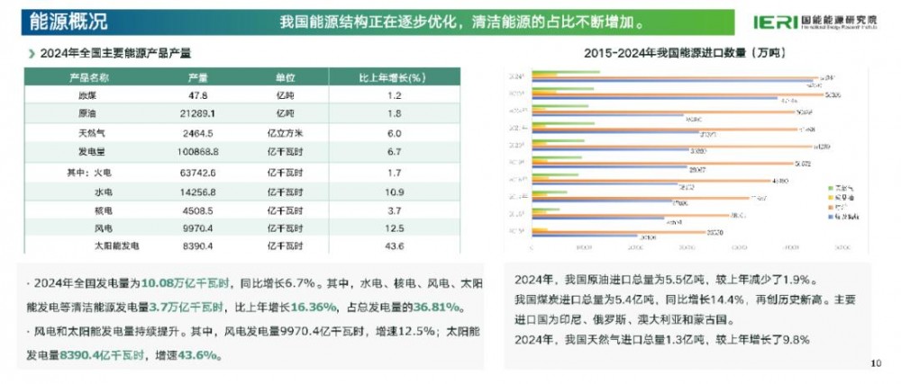在能源产品产量方面,2024年全国发电量首次突破10万亿千瓦时大关,达10.08万亿千瓦时,同比增长6.7%。