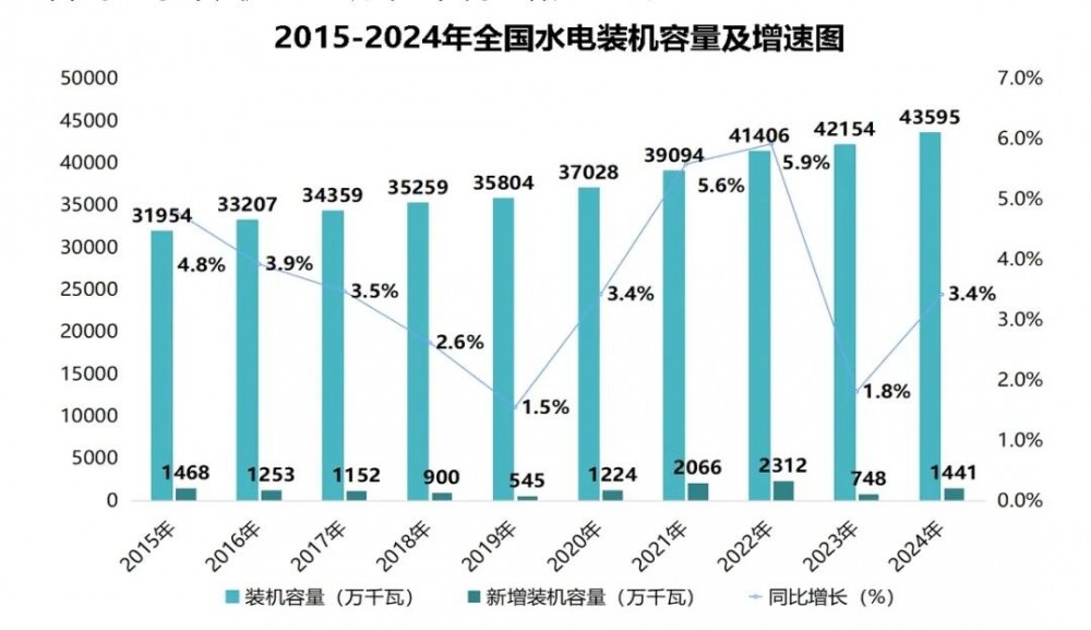 在抽水蓄能方面,截至2024年底,全国累计装机容量达5850万千瓦,同比增长18.84%,当年新增装机容量756万千瓦,建设步伐加快。