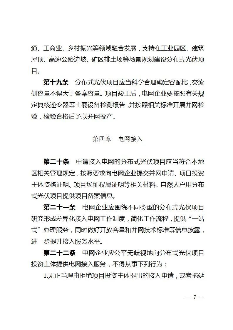 文件明确,一般工商业分布式光伏可选择全部自发自用或者自发自用余电上网模式;采用自发自用余电上网的,年自发自用电量占发电量的比例不应低于80%,后续根据配电网承载能力增长情况适时调整。