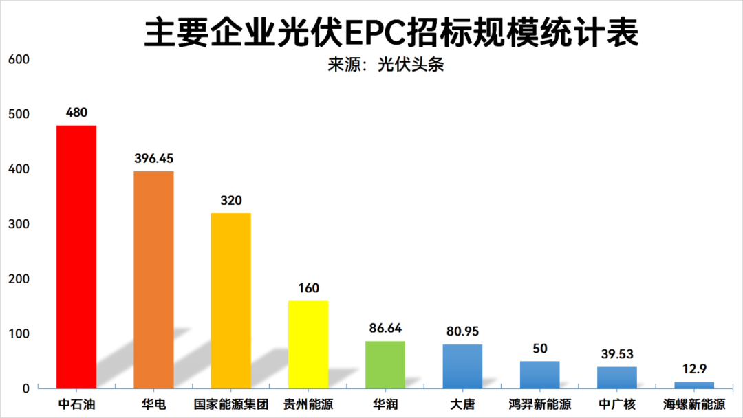 招标方面,本周中石油、华电、国家能源集团、贵州能源集团、华润、大唐、中广核等企业发布了17个招标项目,总规模1626.46MW。其中,中石油以480MW位列第一,华电以396.45MW排名第二,国家能源集团以320MW位列第三。