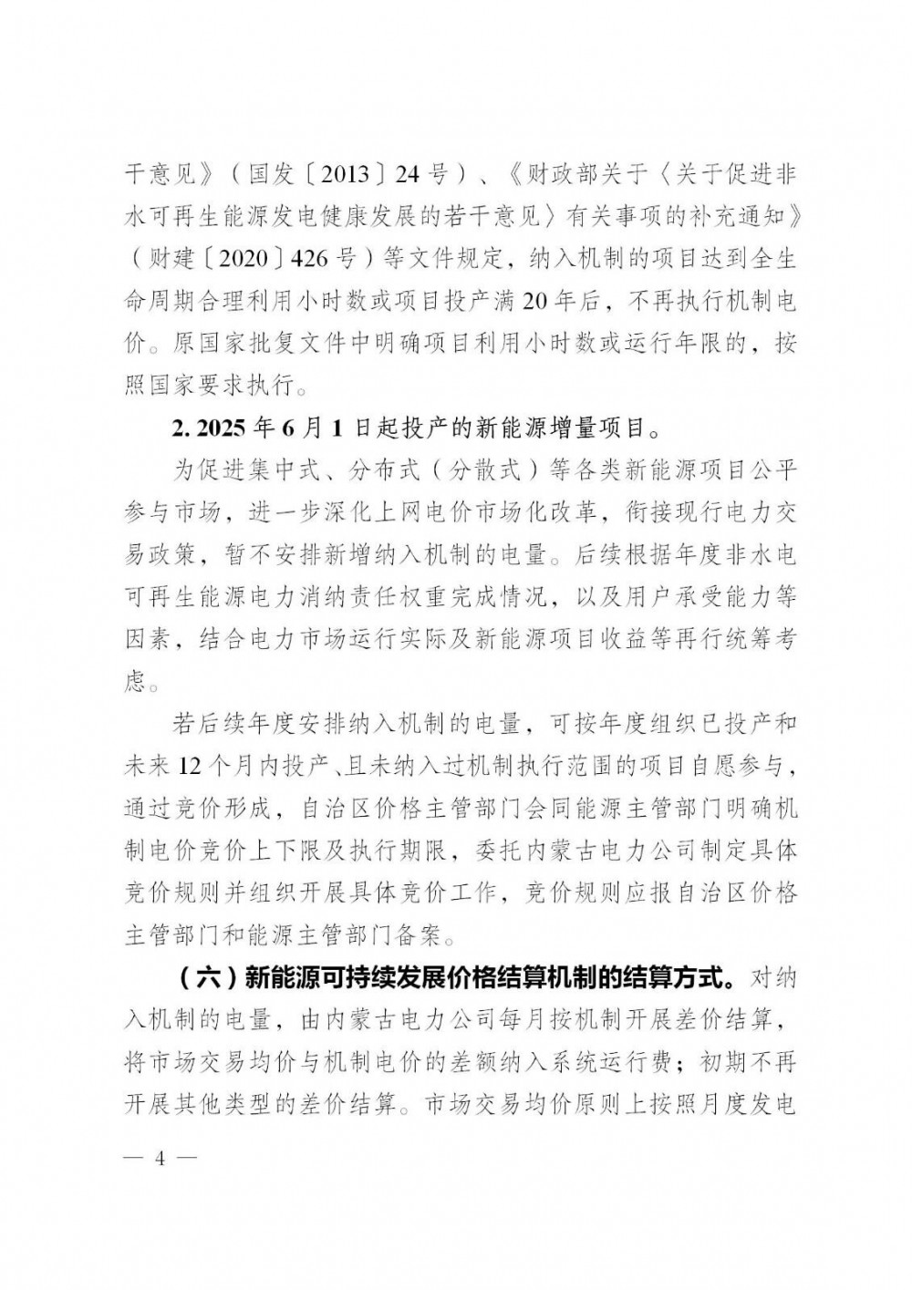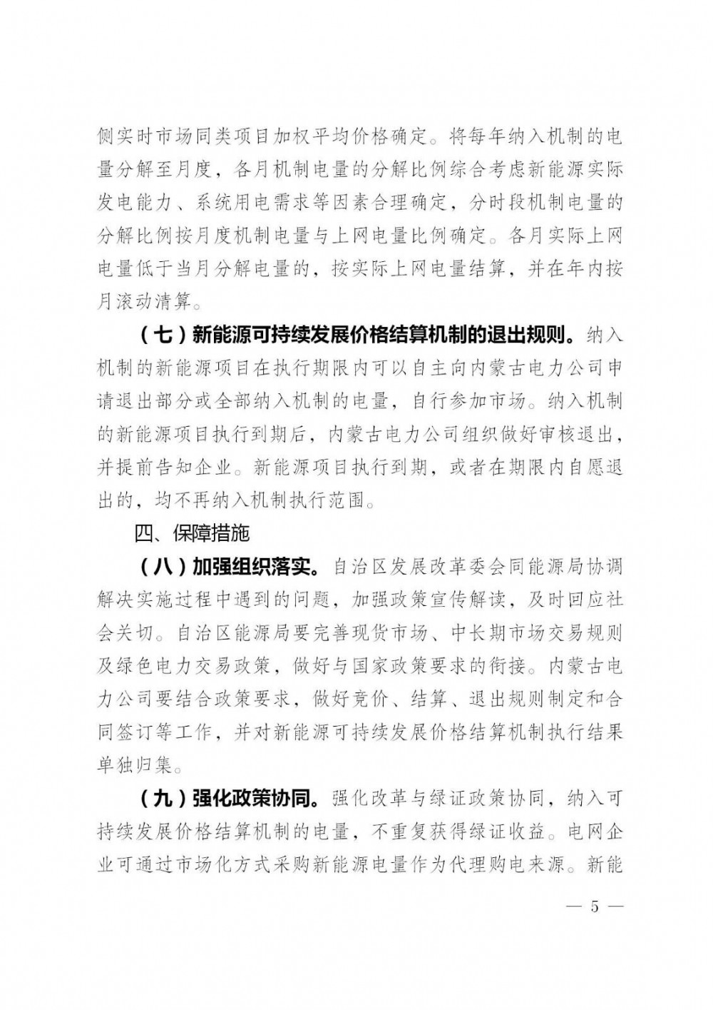 新能源可持续发展价格结算机制的退出规则。纳入机制的新能源项目在执行期限内可以自主向内蒙古电力公司申请退出部分或全部纳入机制的电量,自行参加市场。纳入机制的新能源项目执行到期后,内蒙古电力公司组织做好审核退出,并提前告知企业。新能源项目执行到期,或者在期限内自愿退出的,均不再纳入机制执行范围。