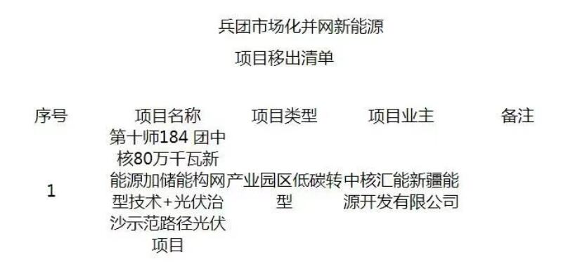 附件:兵团市场化并网新能源项目移出清单