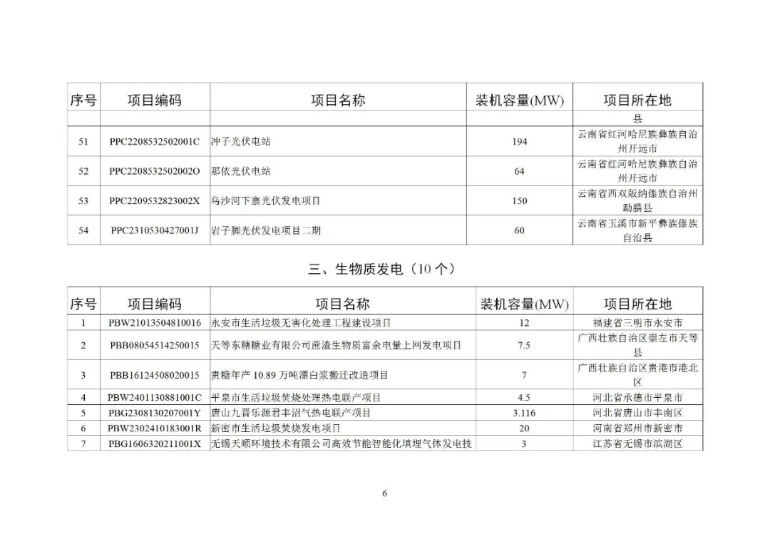2025年5月,全国新增建档立卡新能源发电(不含户用光伏)项目共4917个,其中风电项目32个,光伏发电项目4875个(集中式光伏发电项目54个,工商业分布式光伏发电项目4821个),生物质发电项目10个。风电、集中式光伏发电、生物质发电项目清单见附件,工商业分布式光伏发电项目清单详见国家可再生能源发电项目信息管理平台网站(网址https://jdlk.renewable.org.cn/card-info-sheet/)。