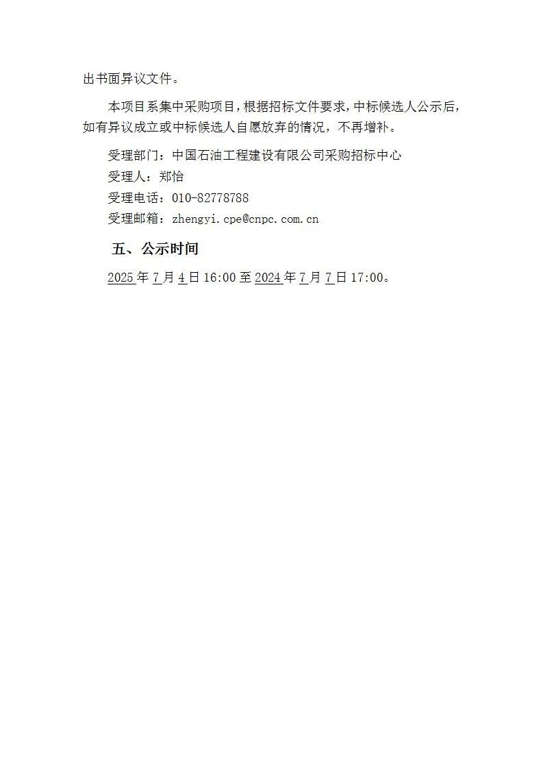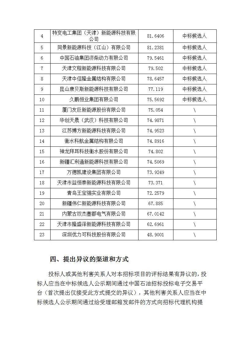 光伏头条获悉,7月4日,中国石油工程建设有限公司新能源项目2024年-2026年光伏支架(二级物资)集中采购(新增)中标候选人公示。