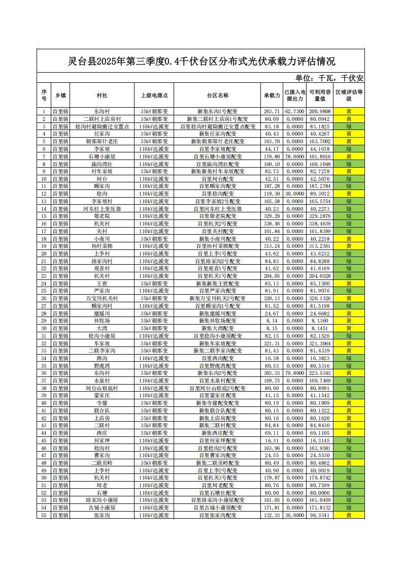根据国家能源局《分布式光伏发电开发建设管理办法》(国能发新能规〔2025〕7号)文件要求,依据《分布式电源接入电网承载力评估导则》(DL_T2041-2019),现将2025年第三季度分布式光伏接入电网可开放容量相关数据向社会公开。
