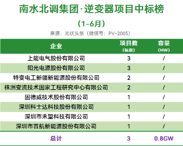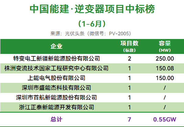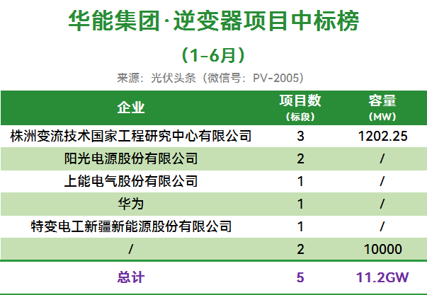 华能2025年上半年有5个光伏逆变器招标项目定标,合计容量11.2GW。